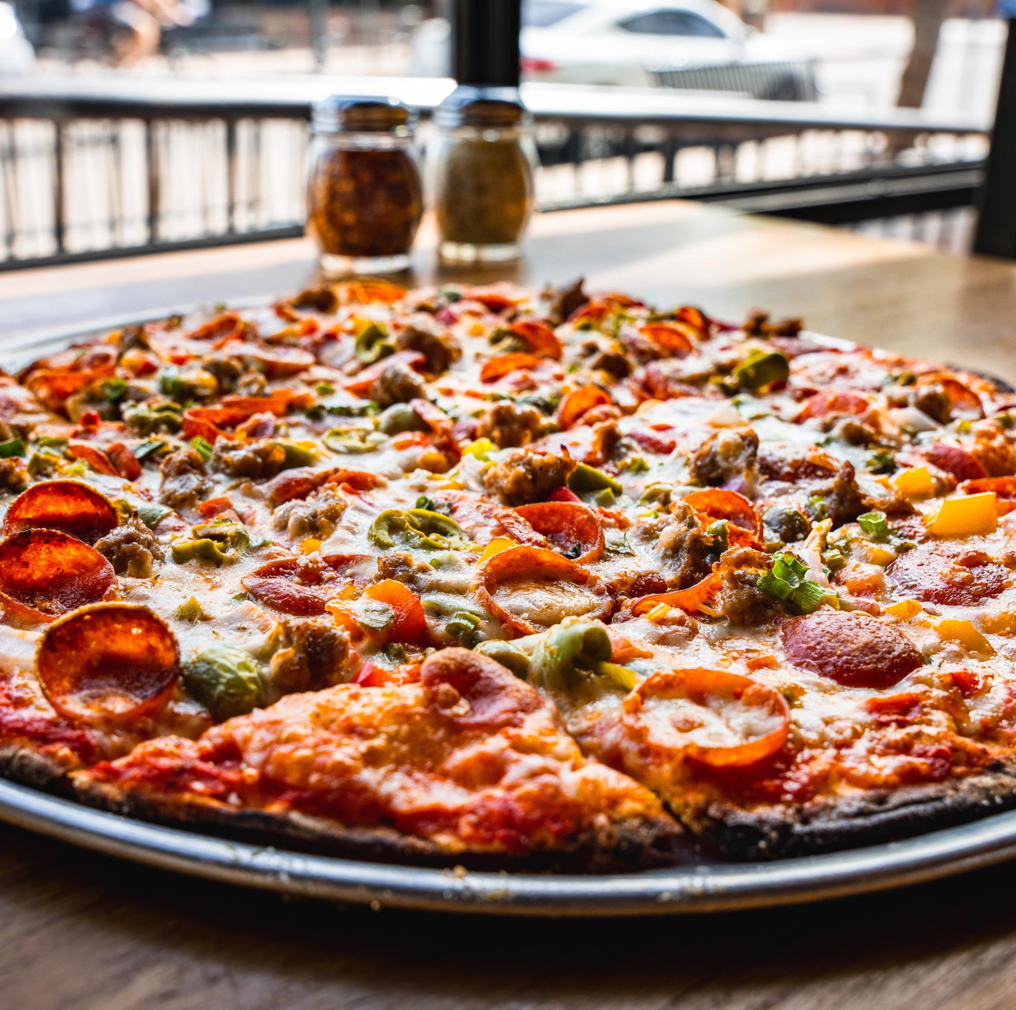 Enjoy lunch and happy hour specials weeekdays, all served with our award-winning pizza and signature Blue Pan hospitality.